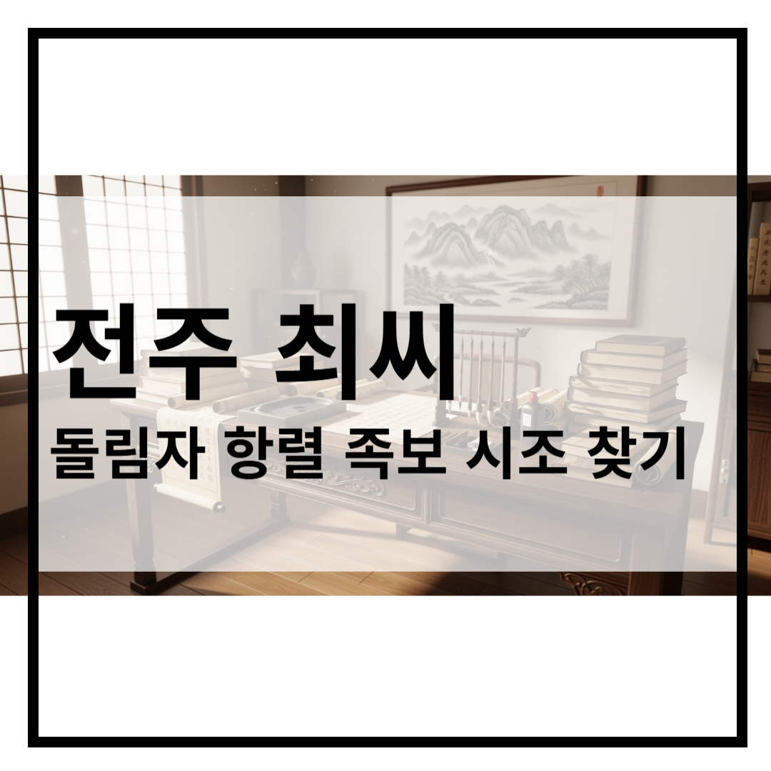 한국의 성씨 중에서도 깊은 역사와 전통을 자랑하는 전주 최씨(全州 崔氏). 많은 분이 자신의 뿌리를 찾기 위해 족보를 살피고, 항렬자(돌림자)를 확인하려 하지만, 전주 최씨는 다른 성씨와 달리 조금 독특한 구조를 가지고 있어 혼란스러워하는 경우가 많습니다.